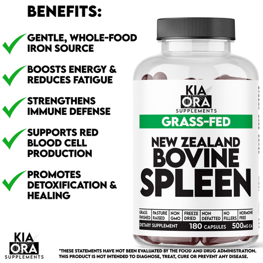 Grass-Fed Bovine Spleen – Heme Iron & Immune Support | Pure Freeze-Dried Organ Supplement for Blood Health & Vitality. 180ct