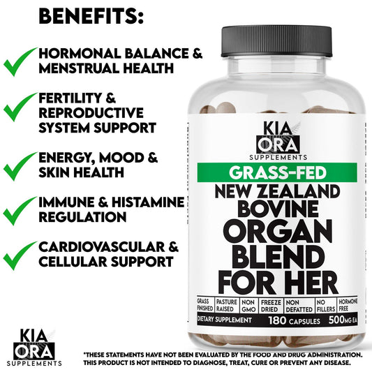 Kia Ora Supplements Female Cycle Support | Uterine, Liver, Heart & Kidney Blend | 180 Capsules