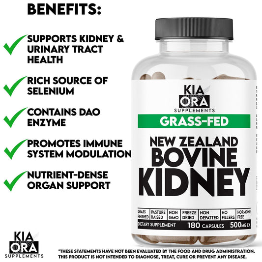 Kia Ora Supplements Histamine Support | 100% Grass-Fed Bovine Kidney | 180 Capsules